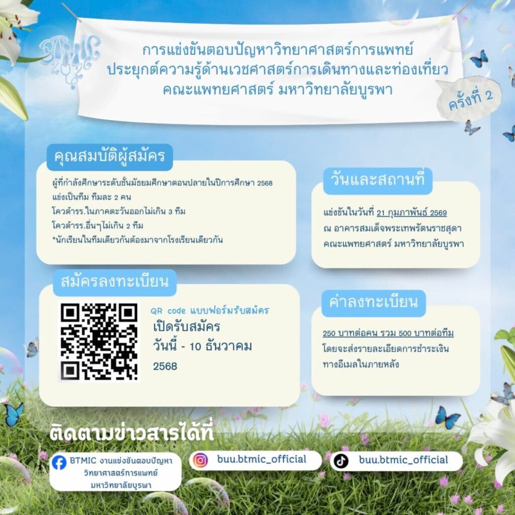 BTMIC 2026 กิจกรรมโครงการแข่งขันตอบปัญหาวิทยาศาสตร์การแพทย์ เวชศาสตร์การเดินทางและท่องเที่ยว ครั้งที่ 2 โดย คณะแพทยศาสตร์ มหาวิทยาลัยบูรพา
