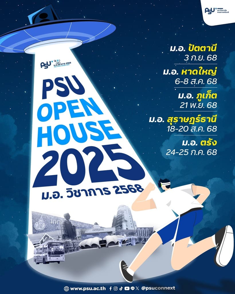งานใหญ่ภาคใต้มาแล้ว! กับงาน ม.อ. วิชาการ ประจำปี 2568 หรือ “PSU Open House 2025” จากมหาวิทยาลัยสงขลานครินทร์ ปีนี้มาในธีม ม.อ. สืบต่อปณิธาน สานประโยชน์เพื่อเพื่อนมนุษย์ “มหาวิทยาลัยแห่งนวัตกรรม สังคม และการพัฒนาที่ยั่งยืน”