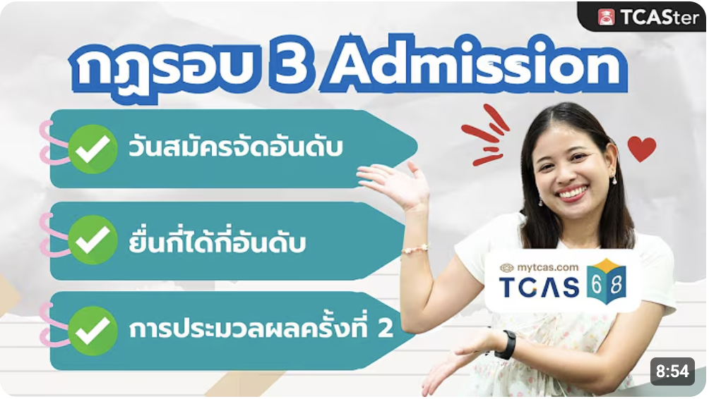 คะแนนครบ คณะและสาขาในใจก็มีแล้ว แต่อย่าลืมกฎของ TCAS รอบ 3 Admission ด้วยว่าเราต้องทำอะไร ระบบเป็นยังไง ประมวลผลครั้งที่สองคืออะไร และช่วงเวลาที่เปิดรับสมัครจัดอันดับด้วย มีแต่เรื่องสำคัญที่ต้องรู้ทั้งนั้นเลย จะเป็นยังไงกันบ้างไปดูกัน!!