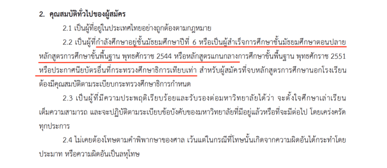 คุณสมบัติทั่วไปของผู้สมัครเป็นคุณสมบัติกลางที่ทางมหาวิทยาลัยใช้เหมือนกัน เป็นด่านแรกที่น้อง ๆ จะต้องเช็ก ซึ่งก็มักจะเป็นระดับชั้นการเรียน หลักสูตรที่เรียน และความประพฤติ