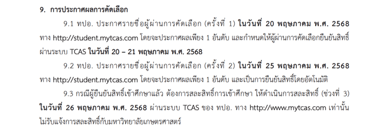 ส่วนนี้จะบอกว่าน้อง ๆ ต้องเข้าไปดูผลการคัดเลือกวันไหน และที่ไหน เพื่อให้น้อง ๆ ตรวจสอบรายชื่อและยืนยันสิทธิ์ภายในช่วงวันเวลาที่กำหนด