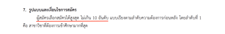 ในส่วนนี้จะบอกน้อง ๆ ว่าน้อง ๆ สามารถสมัครได้สูงสุดกี่คณะ กี่สาขา