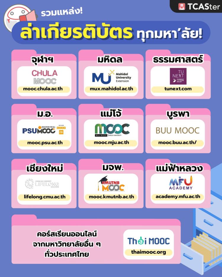 - มหาวิทยาลัยอื่น ๆ ทั่วประเทศ >> https://thaimooc.org/