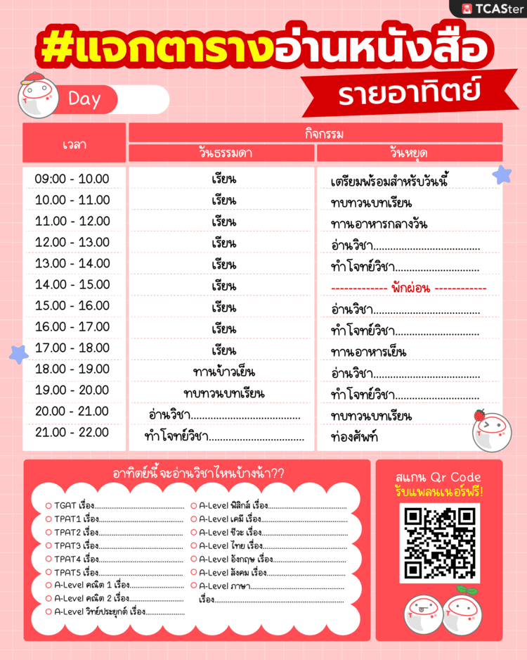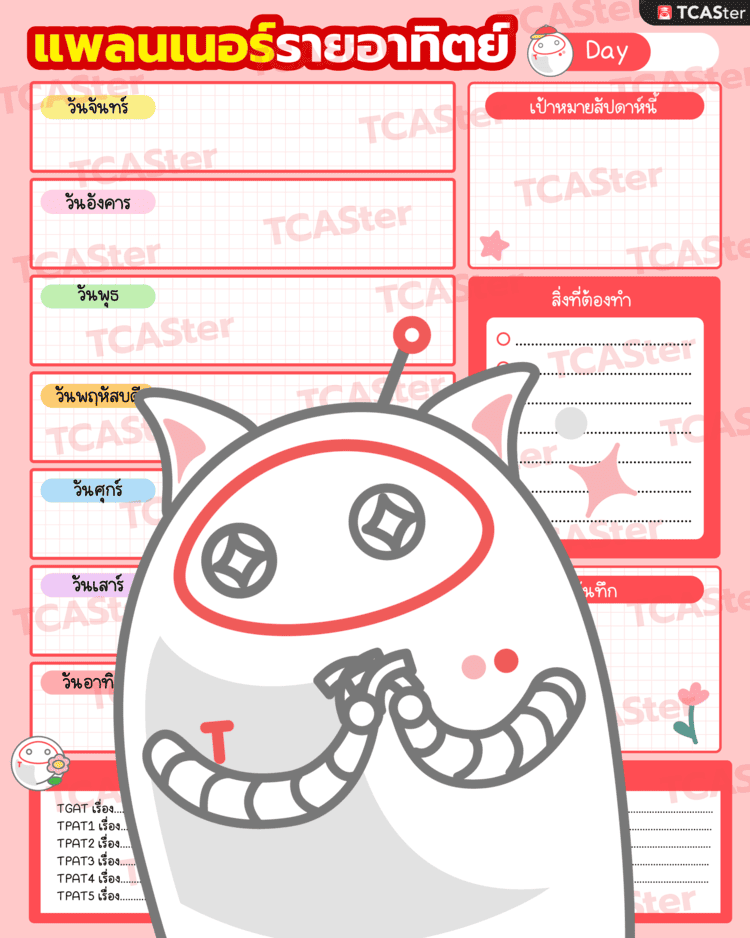 ถ้าน้อง ๆ กำลังวางแผนการเตรียมตัวสอบ อย่าลืมโหลด Planner & Sticker ของ TCASter ไปใช้กันน้า