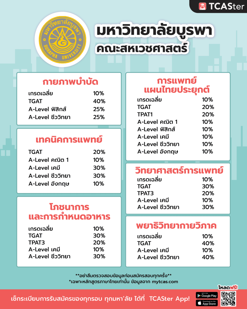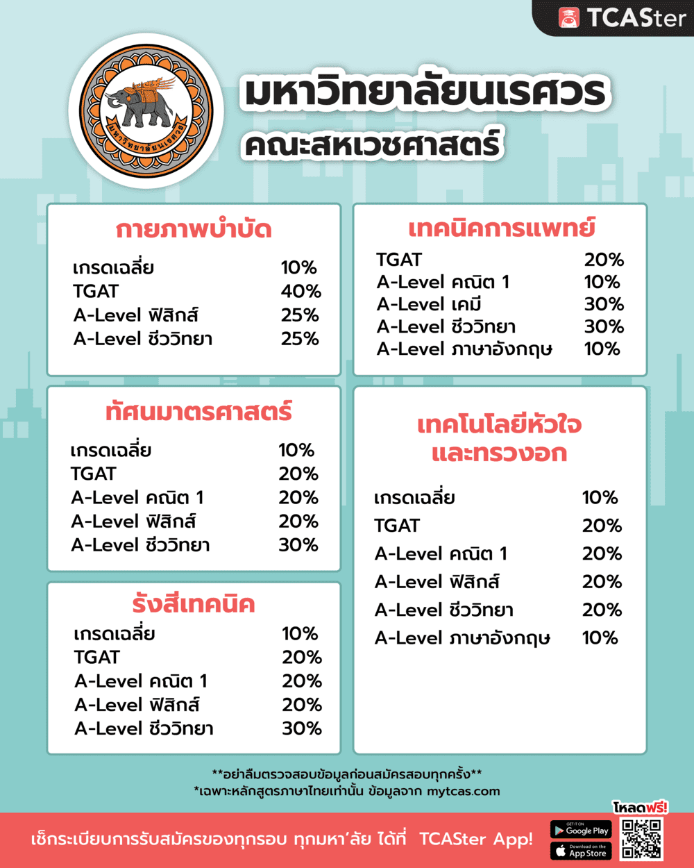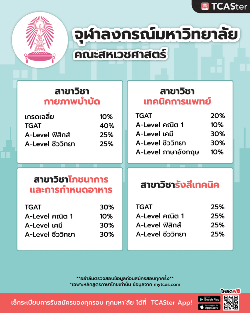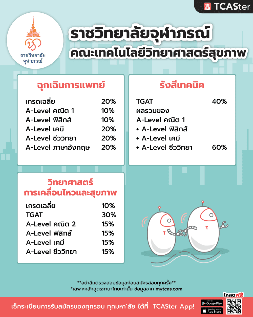 – ผลรวมของ A-Level คณิต 1 + A-Level ฟิสิกส์ + A-Level เคมี + A-Level ชีววิทยา 60%